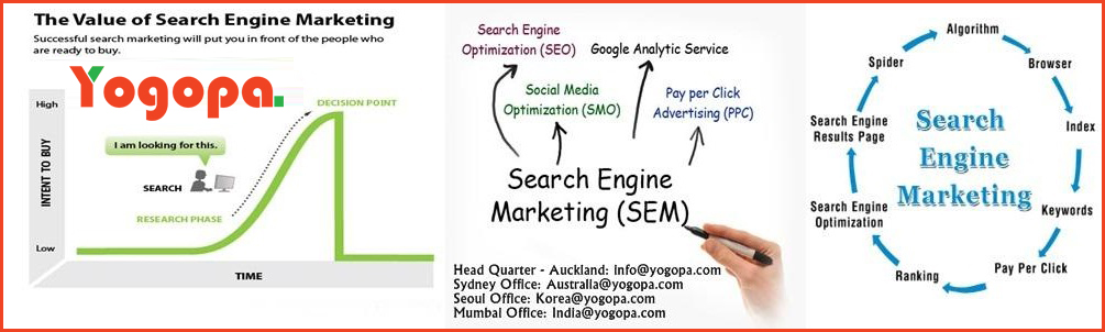 Yogopa provides the best of its service in SEM through PPC. With the increasing popularity and demand of Pay Per Click (PPC), various Businesses are following this listing of Yogopa. Keywords are designed by the company, With search engines, advertisers typically bid on keyword phrases relevant to their target market. Yogopa commonly charge a fixed price per click rather than use a bidding system. PPC shall display advertisements which are shown on website design or search engine results with related content that have agreed to show ads.